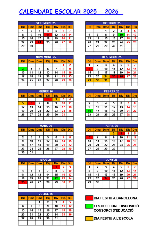 Horari 8.00 hores a 18.00 hores. Des del dia 1 de setembre al 31 de juliol.